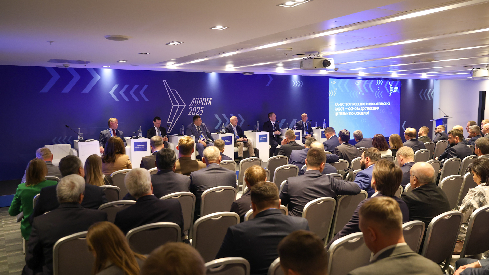 На площадке XII Международной специализированной выставки «Дорога 2025» состоялась конференция «Качество проектно-изыскательских работ – основа достижения целевых показателей». Участниками мероприятия стали заместитель руководителя Федерального дорожного агентства Кайрат Турсунбеков, председатель ТК 418 «Дорожное хозяйство», президент Ассоциации «Р.О.С.АСФАЛЬТ» Николай Быстров, начальник ФКУ «Центрдорразвития» Олег Ширлин, проректор РУТ (МИИТ) Татьяна Марканич, начальник Управления эксплуатации автомобильных дорог Федерального дорожного агентства Роман Беккер, председатель комиссии по проектно-изыскательской деятельности Общественного совета при Федеральном дорожном агентстве, директор филиала АО «Институт «Стройпроект» в Москве Александр Кусик, начальник управления технической политики и инновационных технологий Госкомпании «Автодор» Константин Могильный, а также руководители проектных организаций.