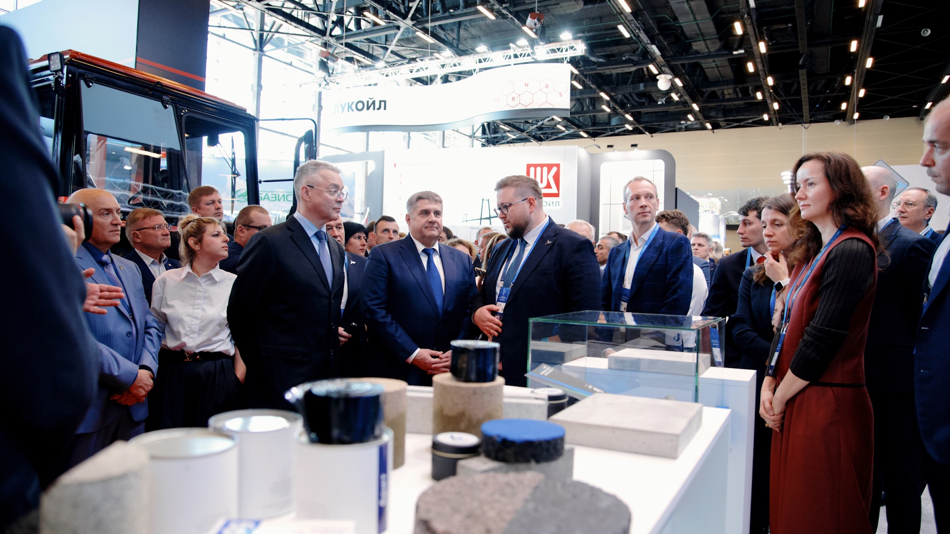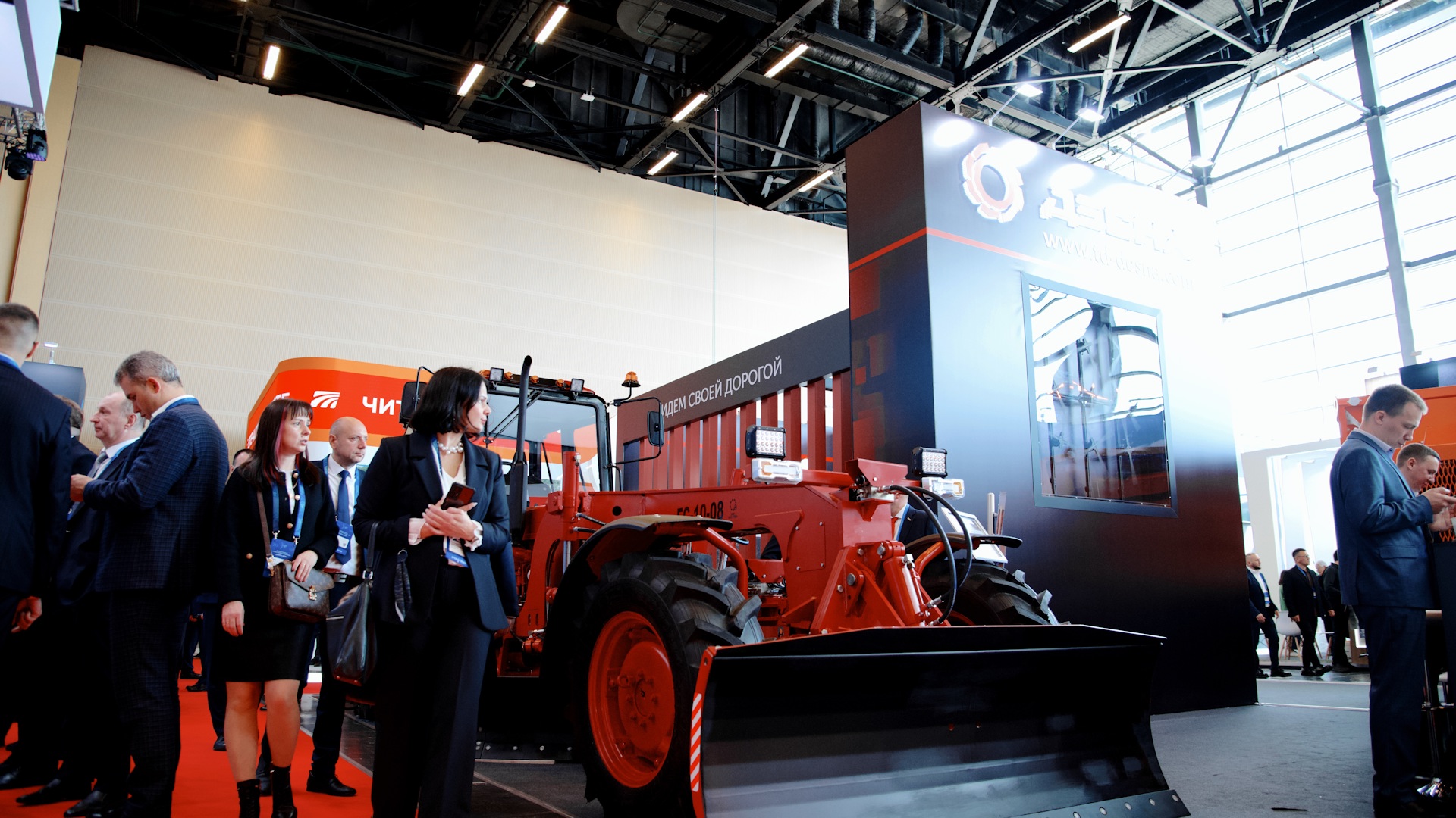 Официальный обход выставки начался с осмотра экспозиции крупнейших производителей отечественной спецтехники, используемой для ремонта и содержания автодорог. Большой интерес гостей мероприятия вызвала дорожная техника, приспособленная для работы в различных климатических зонах, включая низкотемпературные регионы, что особенно актуально для Российской Федерации.