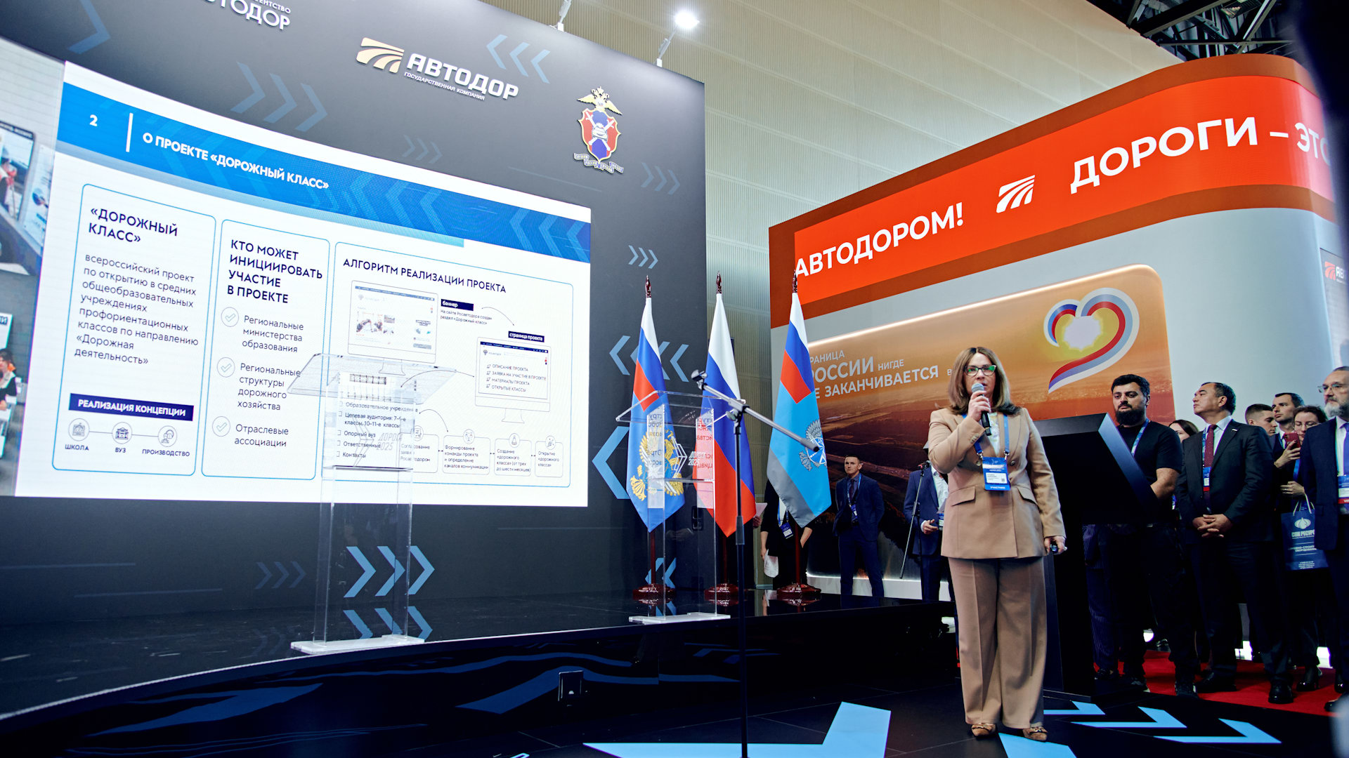На площадке выставки «Дорога 2025» также прошла презентация Всероссийского проекта «Дорожный класс», который предоставляет регионам возможность создавать профориентационные классы по направлению «Дорожная деятельность» в средних общеобразовательных учреждениях. Инициатива направлена на раннее формирование профессиональных навыков у школьников, что подчеркнул заместитель Министра транспорта РФ Игорь Костюченко, отметив важность развития будущих специалистов еще со школьной скамьи.