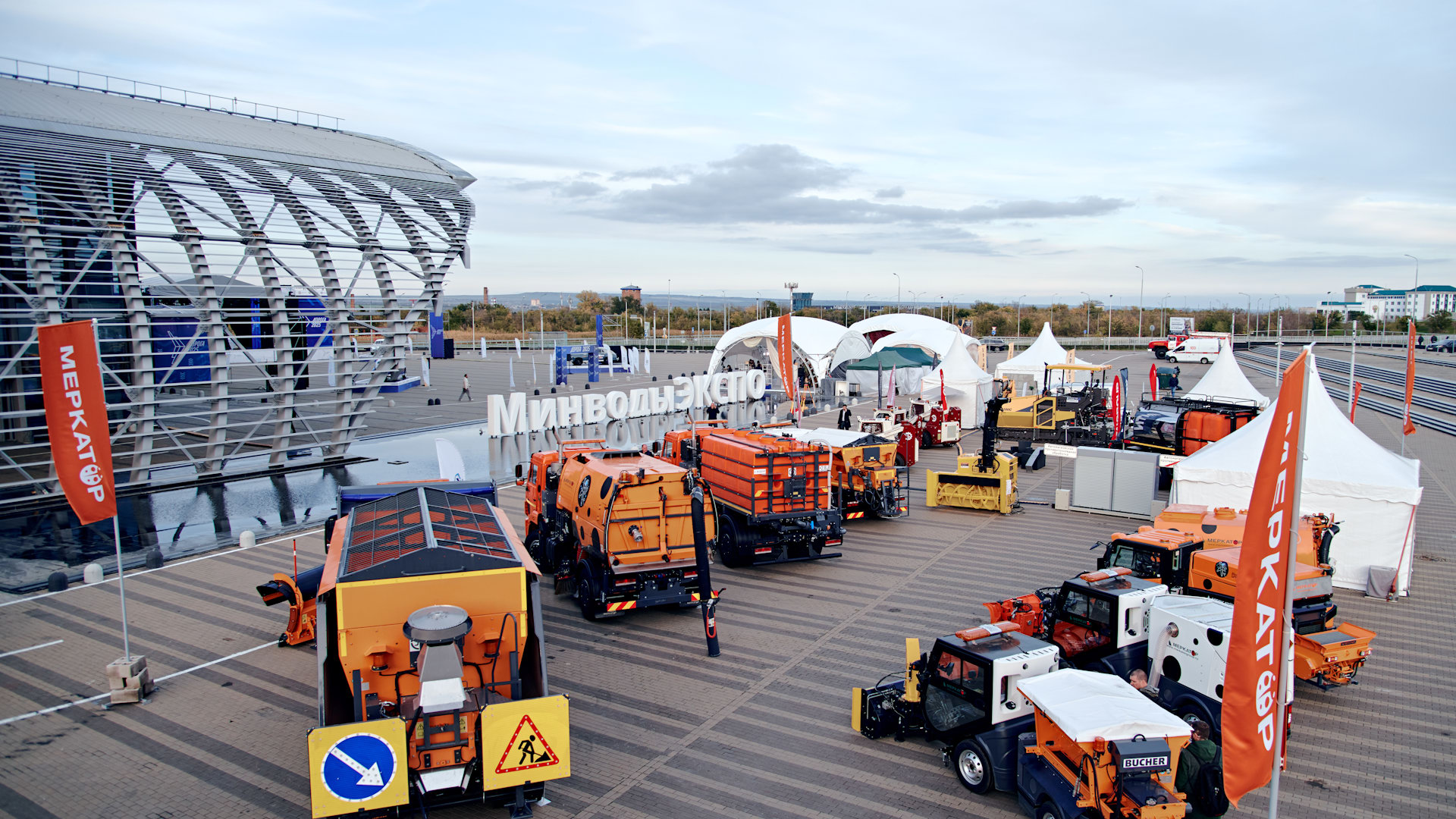 А на открытой площадке развернулась выставка техники и оборудования. В этом году большое внимание было уделено беспилотным системам и цифровым технологиям в строительстве. В частности, на площадке были представлены многофункциональные дорожные машины, беспилотные комплексы для мониторинга дорожной инфраструктуры с воздуха, инновационное оборудование для ремонта и содержания автодорог, включая «умную» мобильную смесительную установку. На открытой площадке разместилось около трех десятков экспонатов, на которых стоит знак «Сделано в России».