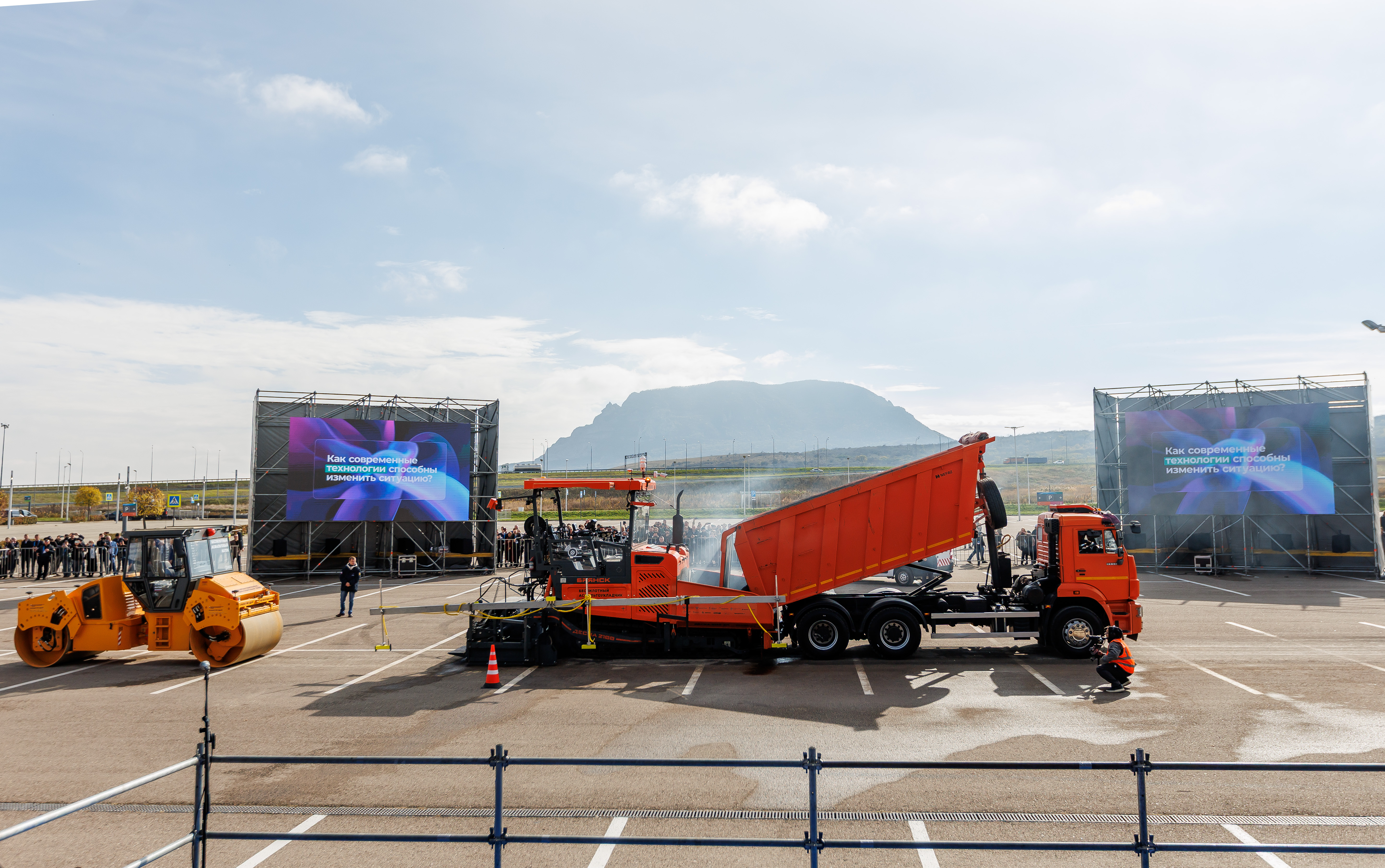 На выставке «Дорога-2025» впервые продемонстрировали полностью беспилотную укладку асфальтобетонного покрытия отечественной техникой
